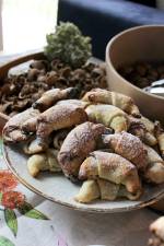 Rogaliki orzechowe 209pewno nie koniec! Korzystam z jesiennych dobroci w postaci orzechów, bo według mnie, smakują teraz najlepiej. Rogaliki są kruchutkie, delikatne i mocno orzechowe. Cudeńka! Składniki: CIASTO: 2 szklanki mąki 1 żółtko 100g twarogu mielonego 150g masła 1/3 szklanki cukru NADZIENIE: 250g orzechów włoskich 1/2 szklanki śmietanki 30% 2 łyżki cukru 2 łyżki miodu 1/2 łyżeczki cynamonu 1 białko odrobina soku