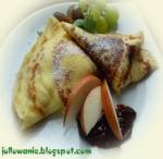 Naleśniki na słodko z białym serem 266Niby proste, a nie zawsze wychodzą. Przepis jest na 6 dużych placków.CIASTO- 1 i 1/2 szklanki mąki pszennej- 1 jajko- 2 i 1/2 szklanki mleka 3,2%- szczypta soli- cukier wanilinowy FARSZ- 400 g twarogu śmietankowego- cukier wanilinowy + łyżka cukru białego- 1 żółtko- 7-8 łyżek jogurtu naturalnego- masło lub olej do smażeniaJeżeli chodzi o farsz(...)klarowane lub olej kokosowy, który daje całkiem inny wymiar smaków i zapachów.Gdy już mamy gorącą oliwę, delikatnie na pochyloną patelnię wylewamy ciasto. Po 2-3 minutach przewracamy i rozkładamy farsz. Zwijamy dowolnie, jak lubimy. Oczywiście zamiast twarogu, mogą być powidła, dżemy, nutelle.Życzę dużo uśmiechu i radości podczas konsumowania. CMOK