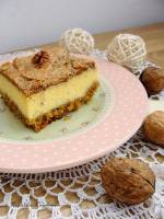 Sernik śmietankowo -orzechowy 266śmietankową masą, z chrupiącą bezą ,ten duet idealnie się ze sobą skomponował. Pycha! Składniki Ciasto: 200 g mąki tortowej 50 g mielonych orzechów włoskich 130 g masła lub margaryny 100 g cukru 4 żółtka 1 łyżeczka proszku do pieczenia Masa: 1 kg mielonego twarogu półtłustego ¾ szklanki cukru 16 g cukru waniliowego 6 jaj 80 g masła 100 g białej(...)CIASTO; Mąkę tortową mieszamy z proszkiem do pieczenia, cukrem i orzechami dodajemy pokrojone zimne masło oraz żółtka, zagniatamy szybko kruche ciasto. Wylepiamy – samo dno wyłożoną pergaminem blaszkę o wym 24/39 cm . 2. MASA; Mielony twaróg miksujemy z jajkami cukrem, cukrem waniliowym oraz budyniem i mlekiem, czekoladę białą rozpuszczamy w kąpieli wodnej dodajemy do masy serowej, miksujemy całość krótko