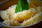 Kopytka / kluski leniwe z parmezanem 329łyżki skrobi ziemniaczanej łyżeczka soli 2 jajka 2 łyżki parmezanu + do posypania po wierzchu. Ugotuj ziemniaki i ostudz. Przemiel w maszynce do mięsa, nastęnie zmiel twaróg. Dodaj parmezan, sól, jaja i mąki. Wyrób ciasto. Jak będzie się lekko kleić do ręki, podsypcie jeszcze mąką. Odkrawajcie po kawałeczku a nastęnie uformujcie wałeczek i kopytka krójcie ostrym nożem i zdecydowanym ruchem. Wrzucajcie