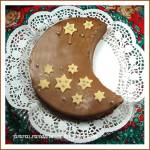 Sernik "Świąteczny Księżyc" 271ułożyć na nasmarowanym tłuszczem spodzie blaszki - tortownicy. Wstawić do nagrzanego piekarnika i piec około 20-25 minut w temp. 190ºC. Po upieczeniu ciasto dobrze wystudzić. Margarynę utrzeć na puch. Dodać do niej twaróg. Żółtka wymieszać z 1 szklanką cukru pudru i z cukrem waniliowym. Do masy twarogowej dodać utarte żółtka, aromat oraz mąkę ziemniaczaną, wymieszaną z proszkiem do pieczenia.Bia