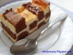 Szachownica – sernik siostry Anieli 414wielka blaszka ciasta, zawsze można podzielić porcję na połowę, choć ja upiekłam z całości, a ciasto znikło w zastraszająco szybkim tempie :) Ciasto biszkoptowe: 1 ½ szklanki mąki 1 ½ szklanki cukru ½ szklanki kakao 8 jajek Masa serowa: 1 kg twarogu 5 jajek 1 ½ szklanki cukru 25 dag margaryny 1 duży cukier waniliowy 1 olejek cytrynowy 1 czubata łyżka mąki ziemniaczanej 1 łyżeczka(...)mniejsze blaszki wyłożone pergaminem. Rozsmarowujemy ciasto na grubość około centymetra i wkładamy do nagrzanego do 180°C piekarnika. Biszkopt pieczemy około 15 – 20 minut. Po upieczeniu biszkopt wyjmujemy z pieca i pozostawiamy do wystygnięcia, po czym delikatnie odrywamy z papieru. Miękka margarynę ucieramy z cukrem, cukrem waniliowym i żółtkami, następnie dodajemy po trochu zmielony twaróg, mąkę ziemniaczaną, proszek do pieczenia