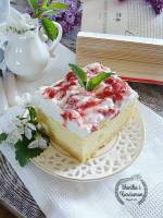 Kremowy sernik z musem truskawkowym 578lepszych serników jakich miałam okazję upiec. Żeby tylko te kalorie z niego nie szły w boczki…ach! Składniki: Ciasto kruche: 30 dag mąki pszennej 20 dag masła 12 dag cukru 1 jajko 1 żółtko Masa serowa: 1 kg twarogu półtłustego 2 łyżki mleka w proszku 1,5 szklanki cukru 1 szklanka śmietany kremówki 1 szklanka śmietany kwaśnej(...)wyłożonej pergaminem blaszki o wym 25/30 cm. Wstaw na 20 minut do lodówki. Po tym czasie nakłuj ciasto gęsto widelcem, włóż do nagrzanego do 195*c piekarnika i podpiec przez 10-12 minut. Wyjmij i ostudź. Masa serowa: Twaróg przełóż do miski, wlej śmietany-kwaśną i słodką, wsyp cukier i zmiksuj blenderem, w trakcie miksowania wbijaj po jednym jajku, dodaj