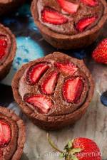 Serniczki czekoladowe z truskawkami 379Serniczki czekoladowe z truskawkami to kolejna po serniczkach z rabarbarem propozycja na przygotowanie sernika w formie mini. Tym razem zaspokoję wszystkich czekoladoholików, gdyż te małe babeczki