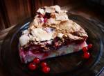 Lekkie ciasto sernikowo-bezowe z wiśniami i porzeczkami (155 kcal/100 g) 455Składniki:Sernikowy spód:250 g chudego twarogu250 g serków homogenizowanych (tu: 1 duży waniliowy danonek (90g) + 160 g serka chudego miss talia 0%) 2 x jajko50