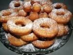 Oponki 198sody 3 łyżki kwaśnej śmietany ły ż ka spirytusu 1 litr oleju do smażenia cukier puder do posypania Sposób wykonania: Twaróg zmieliłam przez maszynkę , dodałam resztę składników i dokładnie wyrobiłam na jednolita masę. Stolnicę posypałam mąką, ciasto rozwałkowałam na grubość około 1 cm. Wykroiłam kółka szklanką od piwa , a środki kieliszkiem. Oponki smażyłam w rozgrzanym oleju