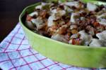 Ruskie kopytka 501cebulę i dobrze wymieszać ( ja mieszam i ugniatam tłuczkiem do ziemniaków). Dobrze przyprawić solą i pieprzem. Odstawić do wystudzenia.Do wystudzonej masy ziemniaczano-twarogowej dodać jajo, mąkę i zagnieść ciasto.Zagniecione ciasto podzielić na kilka kawałków. Z każdego formułować wałek i kroić ukośne kopytka.Kopytka wrzucać partiami na gotującą się (bulgoczącą), lekko osoloną wodę i gotować, aż do wypłynięcia.W międzyczasie przygotować okrasę(...)boczkiem.SMACZNEGO!Uwagi do przepisu:Kopytka mają delikatny smak farszu z pierogów ruskich. Jeśli smak "ruskich" ma być bardziej intensywny, należy dodać więcej twarogu i cebuli ,przy jednoczesnym zachowniu podanej ilości ziemniaków.Gdyby podczas wyrabiania ciasto zbyt się kleiło można dodać trochę mąki ziemniaczanej, ponieważ na konsystencję ciasta duży wpływ ma gatunek ziemniaków (ich mączystość). Ja pozostałam przy podanej ilości mąki