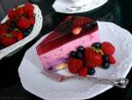 Malinowo Jagodowy Sernik na Zimno 273pięknie się prezentuje, letnie kolory cieszą oczy, a smak - podniebienie. Idealny deser na wakacyjne dni. Ciasto proste w przygotowaniu, i co ważne zrobimy je bez konieczności włączania piekarnika. Malinowo Jagodowy Sernik na Zimno - Składniki:250 ml śmietanki kremówki 30% (schłodzonej)350 g zmielonego dwukrotnie twarogu (temp. pokojowa)60 ml mleka 5 łyżek cukru pudru3 płaskie łyżki żelatynydowolna czerwona galaretka(...)wrzątku. Studzimy. Do ciepłego mleka wrzucamy żelatynę i dokładnie mieszamy do jej rozpuszczenia. Całkowicie studzimy*. Kremówkę ubijamy na sztywno**, dodajemy cukier puder. Następnie, delikatnie mieszając stopniowo dodajemy po łyżce twarogu. Ciągle mieszając, powoli wlewamy mleko z żelatyną.Masę dzielimy na dwie części. Do jednej z nich wrzucamy maliny, do drugiej jagody.Chwilę miksujemy do połączenia składników. Tortownicę z obręczą