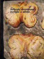 Bułeczki drożdżowe- motylki z serem. 274misy i tworzyć zwartą, ale mięciutką całość (w razie potrzeby można dodać kilka łyżek ciepłego mleka). Tak przygotowane, dobrze wyrobione ciasto oprószamy mąką, miskę przykrywamy ściereczką i zostawiamy do wyrośnięcia na około 60 minut. NADZIENIE: 200 g mielonego twarogu (lub naturalnego twarożku kanapkowego) 1 żółtko przesiany cukier puder (do smaku) 2 łyżki sparzonych i odsączonych rodzynek Twaróg