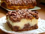 SERNIK KRÓLEWSKI 523rodzynki, morele,skórkę pomarańczową czy orzechy. Składniki na kruche ciasto: 500 g mąki pszennej 1 jajko 3 łyżki kwaśnej, gęstej śmietany 18% 1 łyżka smalcu 200 g masła 1,5 szklanki cukru pudru 3 łyżki gorzkiego kakao 1 łyżeczka proszku do pieczenia Składniki na masę serową: 1 kg. twarogu śmietankowego (musi być zmielony 3 krotnie) ja użyłam firmy President(...)Cały czas miksując, dodawałam po jednym żółtku. Następnie stopniowo dodawałam twaróg. Po nim wsypałam połowę opakowania budyniu. Dokładnie wszystko zmiksowałam. Białka ubiłam na sztywną pianę. Dodawałam stopniowo i delikatnie wymieszałam. Blachę o wymiarach 23/34 cm wyłożyłam papierem do pieczenia. Z zamrażalnika wyjęłam jedną połówkę ciasta. Starłam ją na tarce o grubych oczkach. Na wiórki wylałam masę serową