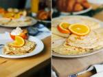 Crêpes - francuskie naleśniki 224Cienkie, delikatne naleśniki, nadziewane serową masą z dodatkiem migdałów i soku z pomarańczy. Powiem szczerze, nie mam ręki do cienkich naleśników. Wszystkie dotychczasowe podejścia kończyły się fiaskiem. Przeważnie ciasto było za gęste i nie chciało się rozlewać, tworząc jedynie dziwny wzorek. A jak już się rozlało to na wieki przywarło do patelni. W sferze marzeń pozostawały krokiety własnej roboty(...)godzinę. Rozgrzać patelnię. Lekko natłuścić ją masłem. Chochelką nabierać ciasto i wlać na środek patelni. Szybko zakołysać by ciasto się równomiernie rozpłynęło. Smażyć z obu stron na delikatnie rumiany kolor. Nadzienie - do miski przełożyć twaróg, rozdrobnić widelcem. Dodać serek mascarpone, zmielone migdały i sok pomarańczowy. Zmiksować na gładką masę. Lekko przestygnięte naleśniki posmarować masą i złożyć. Podać