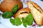 Gruzińskie pierogi Chaczapuri 291gram sera koziego,100 gram sera żółtego,100 gram twarogu półtłustego,2 ząbków czosnku,250 gram mąki,3 jajek,150 ml maślanki,1 łyżeczki sody oczyszczonej,3 łyżek masła, soli,czarnego świeżo mielonego pieprzu,kilku listków bazylii do dekoracji.Przygotowanie dania rozpocząłem od zrobienia farszu do nadziania ciasta. Farsz jest bardzo prosty, jego podstawowe składniki to trzy rodzaje sera(...)żółtego (można zamiast niego użyć sera wędzonego) starłem na tarce o dużych oczkach, podobnie jak 100 sera koziego. Umieściłem je w jednym naczynie, do którego następnie pokruszyłem 100 gram twarogu półtłustego. Do mieszanki serów dodałem dwa przeciśnięte przez praskę ząbki czosnku, niewielką ilość czarnego świeżo mielonego pieprzu i jedno jajko. Całość dokładnie wymieszałem za pomocą łyżki i odstawiłem do lodówki