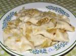 pyszne pierogi rozmarynowe z soczewicą po rusku.... 298Składniki: CIASTO: mąka tortowa 700 gram, woda ciepła 3/4 litra/+_, olej rzepakowy 1 łyżka, sól 1 łyżeczka, jajka 1 sztuka, rozmaryn suszony 1 łyżka FARSZ: soczewica zielona 25 dag, ziemniaki ugotowane 1 szklanka, twaróg 20 dag, majeranek 2 łyżeczki, kucharek 2 łyżeczki, pietruszka 3/4 łyżeczki, cebula podsmażona 4 łyżki DODATKI: cebula 7 sztuk, olej rzepakowy 1 szklanka, masło 1 łyżeczka(...)mielony - do smaku soczewicę ugotować do miękkości, odlać na sito, do miski dać ugotowane wcześniej tłuczone ziemniaki /mi zostały z obiadu/, twaróg tłusty, przyprawy, cebulę, soczewicę i wszystko najlepiej ręką połączyć dobrze do misy robota dać składniki na ciasto, w trakcie wyrabiania hakiem dolewać ciepłej wody tyle +- z 3/4 litra aby ciasto było zwarte i elastyczne-nie luźne, ciasto gotowe