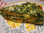 Tort naleśnikowy ze szpinakiem i pomidorami 266szczególnie efektowne no i smaczne. Pyszne jest na ciepło i na zimno. Składniki: Ciasto na naleśniki 2 jajka 1 ½ szklanki mleka Ok. 2 szklanki mąki ¼ łyżeczki proszku do pieczenia Szczypta soli Farsz szpinakowy 2 opakowania mrożonego szpinaku rozdrobnionego 1 cebula 5-6 ząbków czosnku 100 gram twarogu 100 gram sera typu feta 2 łyżki kwaśnej, gęstej śmietany Sól Pieprz Farsz(...)gram sera żółtego typu gouda Olej do smażenia Wykonanie: Produkty na ciasto mieszamy i smażymy naleśniki ( 8 sztuk ). Szpinak rozmrażamy. Na patelni z odrobiną oleju szklimy pokrojoną cebulę i czosnek przepuszczony przez praskę. Dodajemy do tego odsączony szpinak, przyprawiamy solą i pieprzem. Pod koniec dodajemy pokruszony twaróg, fetę i śmietanę. Mieszamy. Na drugiej patelni wlewamy odrobinę oleju, dodajemy pomidory