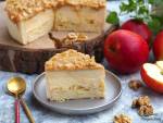 Sernik gotowany z jabłkami i kajmakiem 244Sernik na wypasie w jesiennym klimacie - z jabłkami, kajmakiem i orzechami. Jest to sernik gotowany w garnku, a nie pieczony w piekarniku. Sernik