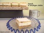 Sernik w kruchym cieście. 269pół. Jedną część wkładamy do lodówki, a drugą wałkujemy i wykładamy nią dno i brzegi formy (wyścielonej papierem do pieczenia). Tak przygotowane ciasto smarujemy dżemem i również przekładamy do lodówki. MASA SEROWA: 500 g dwu, trzykrotnie mielonego twarogu + 125 ml ciepłego mleka (lub 500 g twarogu z wiaderka) 150 g cukru 1 łyżka cukru waniliowego 30 g mąki(...)ubijamy z cukrami, mąką, połową piany z białek, skórką cytrynową, a na koniec dodajemy resztę piany i delikatnie mieszamy. Tak przygotowaną masę ostrożnie wykładamy na dżem. Resztę ciasta wyjmujemy z lodówki, wałkujemy na placek wielkości blachy, ostrożnie przekładamy na masę serową, brzegi ciasta sklejamy, wierzch nakłuwamy widelcem i wkładamy do średnio nagrzanego piekarnika. Pieczemy 45-60 minut na złoto