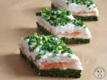 Łosoś pod pierzynką 4166pieczenia. Równamy wierzch i wstawiamy do piekarnika nagrzanego do 180’C. Pieczemy przez 20-25 minut. Nadzienie Twaróg rozdrabniamy przy pomocy widelca, dodajemy przeciśnięty przez praskę czosnek i jogurt naturalny. Doprawiamy do smaku pieprzem i solą. Mieszamy do połączenia się składników. Na ciasto szpinakowe wykładamy połowę sera. Wierzch równamy i układamy plasterki łososia. Przykrywamy resztą sera i równamy. Wierzch posypujemy