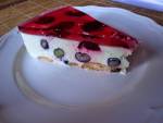 Owocowy sernik bez pieczenia 178czasu każdemu należy się odrobina słodkości a zważywszy, że na dworze nadal trwają upały, potrzeba sprawiła, iż zabrałam się za zrobienie ciasta bez użycia piekarnika. No i wyszło coś takiego… Składniki: biszkopty ok. 1 kg twarogu do sernika 2 galaretki cytrynowe 1 galaretka wiśniowa 100 ml brandy niecała szklanka borówek amerykańskich niecała szklanka wydrylowanych wiśni Wykonanie: Biszkopty nasączamy odrobinę brandy