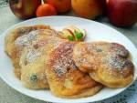 placuszki twarogowe z jabłkami i rodzynkami 230szklanka mąki niepełna szklanka mleka 3 łyżki rodzynek 2 łyżeczki przyprawy do szarlotki (lub cynamonu) 2-3 łyżki cukru tłuszcz do smażenia Twaróg zmiksować z jajkami. Dodać przesianą mąkę, mleko, cukier i przyprawę. Zmiksować na jednolite ciasto. Jabłka pokroić na cienkie kawałki i razem z rodzynkami dodać do ciasta. Wymieszać delikatnie łyżką. Smażyć na rozgrzanym tłuszczu i odsączać