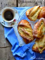 Domowe drożdżówki z serem. 274autora. SKŁADNIKI : na rozczyn: 125 ml mleka ( dałam 70 ml więcej) 25 g świeżych drożdży 3 łyżki cukru na ciasto: 340 g maki tortowej 40 g masła 2 żółtka 1 łyżka cukru waniliowego szczypta soli na nadzienie: 500 g twarogu 1 jajko 2 łyżki cukru waniliowego (dodałam dodatkowo 2 łyżki cukru) cukier puder ok pół szklanki, odrobina gorącej wody(...)sól. Wyrabiamy ciasto, będzie elastyczne, lekko twardawe. Formujemy kulę, przykrywamy, odstawiamy na ok 1 godzinę do podwojenia swojej objętości. Nadzienie : twaróg rozgniatamy widelcem, jeśli mamy grubo ziarnisty warto go przemielić.Mieszamy z jajkiem, cukrem. Wyrośnięte ciasto odgazujemy, uderzając pięścią, lekko zagniatamy. Rozwałkujemy na cienki prostokąt. Nakładamy nasze nadzienie, składamy jak na obrazku powyżej. Ostrym nożem kroimy