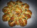 Drożdżowy kwiat z masą makową 288środku i jeszcze mniejsze między podwiniętymi końcami ciasta..Można zrobić oczywiście z innym barwnikiem albo i bez barwnika...zamiast masy makowej można użyć masy kajmakowej, masy z twarogu, dżemu itd..Ciasto wygląda rewelacyjnie ..można je kroić, ale my zjedliśmy je odrywając po kawałku..Polecam.. 15 g drożdży świeżych 90 g masła 200 ml mleka 60 dkg mąki