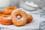 Oponki serowe, czyli pączki z dziurką 552zmniejszenie absorpcji tłuszczu przez nasze pączki czy chrusty. Dziś jednak nie będzie o pączkach ani faworkach, przedstawię Wam bowiem oponki serowe. Są to pączki z dziurką z ciasta z dodatkiem twarogu, różnią się od tradycyjnych pączków tym, że mają w składzie nie drożdże, a sodę oczyszczoną. Z poniższego przepisu wychodzi 18 sztuk o średnicy 6-7cm. Oponki seroweSkładniki:250g(...)łyżek śmietany 12%10g cukru wanilinowego1-1,2l oleju rzepakowego do smażenia Wykonanie:- do zmielonego lub rozdrobnionego twarogu przesiać mąkę, wbić żółtka, dodać cukry, śmietanę, sodę oczyszczoną i spirytus/ocet- podane składniki wymieszać i zagnieść dłonią do powstania elastycznego i lekko klejącego ciasta- olej przelać do szerokiego rondla, jego warstwa powinna mieć wysokość co najmniej kilku centymetrów (zbyt mała ilość sprawi