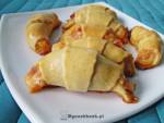 Rogaliki z szynką i serem 229Jeśli chcecie je podać na ciepło podczas imprezy, przygotujcie je trochę wcześniej i przechowujcie w lodówce, a przed samym pieczeniem posmarujcie jajkiem :) Składniki (na 16 sztuk): Ciasto: 200 g mąki 100 g chudego twarogu (przeciśniętego przez praskę lub zmielonego) 2 żółtka 3 łyżki oleju 1/3 łyżeczki soli 1 płaska łyżeczka proszku do pieczenia Nadzienie: 200 g szynki 150 g żółtego(...)tarce. Szynkę i ser umieszczamy w miseczce, dodajemy jajko i dokładnie mieszamy. Odstawiamy na bok. Ciasto: Mąkę przesiewamy wraz z proszkiem do pieczenia do miski. Dodajemy twaróg, olej, sól, żółtka i wyrabiamy gładkie ciasto. W razie potrzeby dosypujemy trochę mąki. Ciasto dzielimy na 2 części. Każdą rozwałkowujemy na podsypanym mąką blacie na kształt okręgu (grubości ok. 3 mm). Następnie dzielimy
