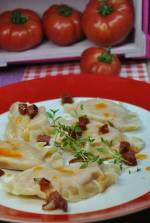 Nowe oblicze ruskich pierogów...z ketchupem i chorizo :-P 238ruskie pierogi z ketchupem. Postanowiłam dodać go do farszu :) Wyszły super. Na pewno będą smakowały dzieciom :)Składniki:Ciasto: 2 szklanki mąki 1 jajko ½ szklanki mleka 1 łyżka oleju ¼ szklanki gorącej wody szczypta soliFarsz500g ugotowanych ziemniaków250g twarogu chudego1 cebulaząbek czosnkusól i pieprzok. 5 łyżek ketchupu Ponadto:1 cebulaolej do smażeniapół pęta chorizoświeży tymianek(...)dodać do ziemniaków, doprawić solą i pieprzem, następnie połączyć. Na sam koniec dodajemy ketchup i całość mieszamy.Ciasto: Wysypać mąkę na stolnicę, wbić jajko i zagnieść elastyczne ciasto dodając wodę oliwę i sól. Ciasto partiami rozwałkować, wykrawać krążki np. szklanką, na każde kółeczko nakładać porcję farszu. Następnie zalepić. Pierogi gotować w osolonym wrzątku, na małym ogniu do momentu wypłynięcia