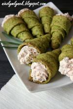 Rożki z rukoli z serkiem łososiowym 256jeżeli chodzi i imprezy, jednak rukolowe rożki będą pasowały wszędzie. 12 porcji Składniki: ciasto 2 łyżki miękkiego masła 75 g świeżej rukoli 125 g mąki pszennej 0,5 łyżeczki proszku do pieczenia 1 łyżeczka płaska soli nadzienie 275 g twarogu chudego 100 g wędzonego łososia pęczek kopru sól i pieprz do smaku