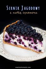 Sernik jagodowy z nutką cynamonu 386Ciasto wyjąć z lodówki, podzielić na dwie części. Większą część ciasta przeznaczyć na wylepienie cienko spodu tortownicy. Pozostałe ciasto zostawić na późniejsze wylepienie boków. Piec przez ok. 15 minut. Wyjąć z piekarnika, wystudzić. Masa serowa: 500 g twarogu półtłustego lub tłustego, zmielonego trzykrotnie 440 g serka typu włoskiego (np. Capri, Capresi, Pilos) zmielonego trzykrotnie 400 g śmietany(...)roztrzepać z cukrem, dodać śmietanę, wymieszać trzepaczką. Następnie po trochu dodawać zmielony ser. Wsypać budyń, wymieszać łyżką. Na końcu delikatnie wmieszać do masy jagody. Boki tortownicy cienko wylepić pozostałym ciastem. Masę serową przełożyć do tortownicy. Piekarnik rozgrzać do 150 ° C bez termoobiegu. Sernik wstawić do piekarnika. Piec 1,5 godziny. Po upieczeniu lekko uchylić drzwiczki piekarnika i zostawić sernik