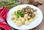 Jaglane kluski z sosem grzybowym 253Przepis na pyszne kluski z dodatkiem kaszy jaglanej i twarogu podane z sosem ze świeżych grzybów leśnych. Kluski można podać oczywiście z innym sosem, albo na