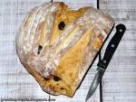 Chleb z twarogiem i rodzynkami 395pilnować, gdyż drożdże kipią. W dużej misce wymieszać razem obydwie mąki i sól. Dolać rozczyn drożdżowy. Na końcu wkruszyć twaróg i dołożyć rodzynki. Wyrabiać przez ok 10 minut, do dokładnego połączenia składników i uzyskania gładkiego oraz elastycznego ciasta - leniwiec kuchenny może tu użyć miksera z mieszadłami hakowymi (nie trzepakami). Gdy mikser będzie się już buntował (bo ciasto chlebowe będzie(...)raczej mocno zwarte), dokończyć wyrabianie ręcznie. Odstawić je w misce przykrytej ściereczka kuchenną na ok. 1 godz. do wyrośnięcia - podwojenia objętości . Wyrośnięte ciasto chlebowe zbić w misce kilka razy pięścią i krótko zagnieść od brzegów do środka - a wszystko to w celu dokładnego odgazowania . Uformować w rękach owalny bochenek. Ułożyć go na blasze wyłożonej papierem dopieczenia i obsypanej lekko mąką