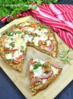 Dietetyczna pizza na otrębowym spodzie (223 kcal) 360Pizza jest bardzo smaczna, choć otrębowy spód nie przypomina w smaku tradycyjnego ciasta na pizzę. Na pewno jest to pyszna propozycja dla wszystkich będących na diecie Dukana. Jeśli pizzę podzielimy na 6 porcji, to jeden kawałek będzie miał 223 kcal. Składniki: 250 g chudego twarogu 3 jajka po 3 kopiaste łyżki otrębów pszennych, żytnich i owsianych łyżeczka proszku do pieczenia