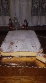Serniczek czeski :) 315szklanki cukru - 1 szklanka mleka Potrzebne produkty na masę serową: -0,5 kg twarogu - 0,5 kostki margaryny --> rozpuszczonej i ostudzonej - 3 żółtka + piana z 3 białek ;) - 1 łyżka mąki ziemniaczanej - 1 cukier waniliowy - 1 szklanka cukru Wszystkie składniki na ciasto razem miksujemy. Następnie miksujemy składniki na masę serową, dodajemy ubita pianę i mieszamy, bądź na malutkich obrotach miksujemy