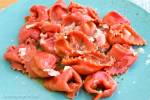 Czerwone tortelli z wędzonym twarogiem. 161Było na zielono. Dzisiaj zatem będzie... na czerwono 😀 Tak w zasadzie to kolor miał być inny. I z innym nadzieniem. I inny typ pasty