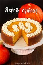 Sernik dyniowy 290Ciasto wyjąć z lodówki, podzielić na dwie części. Większą część ciasta przeznaczyć na wylepienie cienko spodu tortownicy. Pozostałe ciasto zostawić na późniejsze wylepienie boków. Piec przez około 15 minut. Wyjąć z piekarnika, wystudzić. Masa serowa: 850 g twarogu tłustego lub półtłustego, zmielonego trzykrotnie lub dobrego twarogu sernikowego 500 g puree z dyni (potrzebna 1 kg dynia) - szczegółowa instrukcja tutaj(...)łyżką do połączenia się wszystkich składników. Wsypać mąkę ziemniaczaną i przyprawy dokładnie ale niezbyt energicznie wymieszać. Piekarnik rozgrzać do 150 ° C bez termoobiegu. Boki tortownicy cienko wylepić pozostałym ciastem. Masę serową przełożyć do tortownicy. Piec 1,5 godziny. Upieczony sernik powinien mieć wyraźnie ścięty, sprężysty wierzch. Po upieczeniu uchylić drzwiczki piekarnika i zostawić sernik do ostygnięcia. Następnie wyjąć