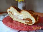 Ciasto drożdżowe z jabłkami i serem 312mleka i połowy szklanki mąki sporządzamy rozczyn.Wlewamy go do miski z trzema szklankami mąki.Odstawiamy do wyrośnięcia. Twaróg rozdrabniamy widelcem, dodajemy jajko i cukier i dokładnie mieszamy.Dodajemy mąki, aromat i stopione masło.Wszystko mieszamy. Do ciasta wlewamy pozostałe mleko, dodajemy jajka, sól i aromat.Wstępnie zagniatamy.Dosypujemy stopniowo mąkę i wyrabiamy ciasto.Wlewamy roztopione masło i wyrabiamy(...)się wchłonie.Odstawiamy do wyrośnięcia. Wyrośnięte ciasto dzielimy na 3 części. Na stolnicy formujemy prostokąty o długości blaszki, na której będą się piekły.W dwa prostokąty zawijamy jabłka. Układamy je na dnie blaszki. Trzeci prostokąt układamy na dwóch poprzednich wałkach, wykładamy twaróg i zbieramybrzegi ciasta.Pozostawiamy do wyrośnięcia. Smarujemy roztrzepanym jajkiem