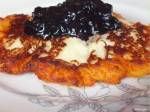 Placuszki twarogowe z sosem jagodowym 326Placuszki twarogowe z sosem jagodowym Składniki: ciasto: - 600 g twarogu półtłustego - 2 żółtka - 6 łyżek mąki pszennej - 3 łyżeczki cukru waniliowego sos: - czarne jagody pasteryzowane (u mnie Polska Róża) - 2 łyżki cukru trzcinowego dodatki: - olej rzepakowy do smażenia Przygotowanie: Składniki na ciasto dokładnie mieszam i smażę na dużej ilości oleju, z obu stron na kolor złoty. Jagody gotuję w małym