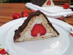 Chatka serowa z truskawkami i polewą czekoladową 318kształt stożka. Przy pomocy folii aluminiowej podnosimy ku górze po 1 rządku herbatników z każdej strony i dociskamy je, tworząc trójkąt. Twaróg, który wydostanie się nam poprzez szczeliny między ciastkami podczas układania „chatki” rozsmarowujemy na wierzchu herbatników. Nasze ciasto wstawiamy do lodówki na kilka godzin (w tym czasie masa serowa stężeje, a herbatniki lekko zmiękną). Czekoladę łamiemy na kawałeczki, przekładamy
