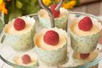 Mini serniczki z białą czekoladą 302wystudzenia. Piekarnik rozgrzewamy do 175 stopni C. Na dno piekarnika wstawiamy naczynie żaroodporne z wrzącą wodą. Jajka ucieramy z cukrem. Dodajemy twaróg i wsypujemy proszek budyniowy. Wlewamy śmietanę z czekoladą i starannie mieszamy. Do przygotowanych papilotek nakładamy porcję ciasta. Wstawiamy do piekarnika na 25 minut. Zostawiamy przez 15 minut w wyłączonym piekarniku z uchylonymi drzwiczkami. Następnie wyjmujemy i czekamy