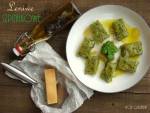 Pierogi leniwe ze szpinakiem 299ziemniaków lub przecisnąć przez praskę, wystudzić. Twaróg rozgnieść widelcem lub również przecisnąć przez praskę. Czosnek poszatkować na drobne kawałki. Twaróg wymieszać z ziemniakami, dodać szpinak, jajka, sól oraz czosnek. Po trochu dodawać mąki i zagniatać elastyczne ciasto. Jeśli się mocno lepi, dosypać jeszcze trochę mąki. Urywać po kawałku ciasta, na posypanej mąką stolnicy rolować go w wałek, delikatnie