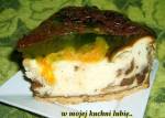 na markizach sernik z mandarynkami w galaretce... 305ubić na sztywno żółtka, cukier, skórkę z 1 cytryny i sok utrzeć mikserem na kogel-mogel do masy jajecznej dodać twaróg na sernik, budynie, olej i dobrze mikserem utrzeć dodać ubitą pianę i posiekaną czekoladę, delikatnie wymieszać łyżką ciasto wlać do blaszki na markizy i piec w 200C około 40 minut 2 galaretki razem rozpuścić w 800ml gorącej wody