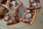 Placek ze śliwkami 239cukru 200 g śmietany 30% lub 36% 50 g twarogu 2-3 łyżki soku śliwkowego cukier puder do posypania gotowego placka WYKONANIE Spód: Do miski wsypać mąkę, proszek do pieczenia, szczyptę soli, zmielone migdały, cukier puder, posiekane nożem zimne masło, wbić jajka i zagnieść jednolite ciasto. Gotowe zawinąć w folię spożywczą i włożyć na 1-2 godziny do lodówki(...)ciasto. Gotowe przełożyć do blaszki i podwinąć boki na 2-3 cm. Warstwa wierzchnia: Mrożone śliwki odmrozić wcześniej i odlać z nich sok, świeże przekroić na połówki i wyciągnąć pestki. Zimną śmietanę ubić w misce. Do miski wbić jajka, dodać szczyptę soli i ubijać na puszystą pianę stopniowo dodając cukier. Na koniec dodać twaróg, sok śliwkowy (2-3 łyżki