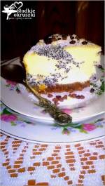 Delikatny sernik z makiem i nutą pomarańczy na czekoladowym spodzie 312lubiane przez domowników. Dziś zapraszam Was na wspaniały i bardzo delikatny sernik z makiem i nutą pomarańczy na czekoladowym spodzie. Pierwszy raz go upiekłam na Święta, ale takie ciasto doskonale sprawdzi się również do codziennej kawy lub herbaty, spotkań z przyjaciółmi, odwiedzin u rodziny itp. Sernik nie jest trudny w wykonaniu. Spróbujcie. Delikatny sernik z makiem i nutą(...)łyżki ciemnego kakao 100 g masła Na sernik 1 kg twarogu sernikowego 18% tłuszczu 4 jajka klasy M 2-3 krople aromatu pomarańczowego Delecta 150 g cukru 3/4 szklanki śmietanki uht 12% 2 łyżki kandyzowanej skórki pomarańczowej 3/4 szklanki niebieskiego maku 1 duży budyń śmietankowy Delecta Wykończenie ciasta cukier puder do delikatnego oprószenia Delecta Decorada Kamyczki czekoladowe 40 g Przygotowanie