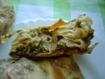 Burek z mięsem, szpinakiem i botwinką. 261kulinarną podróż w tamte strony :-) Składniki na burek z mięsem, szpinakiem i botwinką 500 g ciasta filo z tego przepisu 250 g ugotowanego mięsa 300 g szpinaku lub liści botwinki (ja pomieszałam w proporcji 50:50) 2 ząbki czosnku sól pieprz ewentualnie garść twarogu lub sera feta olej Szpinak lub botwinkę gotujemy. Szpinak około(...)minutach całość odcedziłam). Odcedzone liście dobrze odciskamy. W maszynce do mielenia mielimy mięso i zieleninę, dodajemy przeciśnięty przez praskę czosnek, następnie dobrze mieszamy i doprawiamy. Ciasto dzielimy na 4 części. każdą z nich umieszczamy na stolnicy i wałkujemy ile się da. Dłonie smarujemy lekko podgrzanym olejem, łyżkę oleju rozlewamy na placku i delikatnie masujemy ciasto. Następnie takie