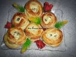 95. Jabłuszkowy zawrót głowy: czyli cynamonowe bułeczki półfrancuskie z prażonymi antonówkami. 370powodu umieściłyśmy tu przepis na te pyszności, a to dlatego, że piękna jesień niestety już niedługo zapewne nas opuści i będziemy musieli poradzić sobie sami.. Dodatkowo ciasto półfrancuskie nie jest aż tak pracochłonne jak francuskie i nie ma się tu naprawdę czego obawiać.. Zresztą przekonajcie się sami, zapraszamy! Składniki: (na 9 sztuk) 200g mąki tortowej + odrobina(...)otrzymania konsystencji kruszonki(oczywiście zamiast można posiekać masło na mące). Gdy takową otrzymamy dodajemy żółtko oraz zmielony twaróg i serek twarożkowy. Składniki łączymy ze sobą zagniatając dłońmi - staramy robić to sprawnie i w jak najkrótszym czasie. Finalnie powinniśmy otrzymać zwarte i elastyczne ciasto. Ciasto owijamy folią spożywczą i umieszczamy w lodówce na ok.40min w celu schłodzenia. Jabłka dokładnie myjemy