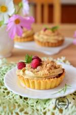 Witam się z Wami po dłuższej wakacyjnej przerwie i zapraszam na małą rozkosz smakową J Kruche ciasto, orzeźwiające maliny i słodziutki pistacjowy krem , całość obsypana