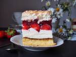 Truskawkowa królowa 49Truskawkowa królowa to spektakularne warstwowe ciasto, które z pewnością posmakuje każdemu. Składa się z delikatnego biszkoptu, kremu z białą czekoladą, warstwy soczystych truskawek w galaretce i
