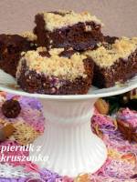 piernik z dżemem i kruszonką 183Wilgotny od dżemu piernik z chrupiącą kruszonką. Ciasto może nie typowo świąteczne ale do jesiennej kawki doskonałe. *foremka 25*34 cm Składniki: 10 łyżek mąki 10 łyżek cukru 10 łyżek mleka 400 g dżemu porzeczkowego 125 g masła 5 łyżek miodu łyżka kakao 3 jajka 2 łyżeczki sody oczyszczonej opakowanie przyprawy do piernika dodatkowo: 3 łyżki mąki 2 łyżki cukru(...)Żółtka utrzeć z cukrem. Do utartej masy dodać miód, następnie mąkę, i masło oraz 200 g dżemu Krótko zmiksować. Na końcu delikatnie łyżką wmieszać pianę z białek. Ciasto przełożyć do foremki wyścielonej papierem do pieczenia. Resztę dżemu wymieszać z mąką ziemniaczaną. Olej, mąkę, cynamon i cukier wymieszać tak, żeby powstała kruszonka (jeśli trzeba to dodać oleju). Ciasto wstawić