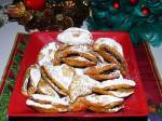 Orzechowe gwiazdki 145łyżek kwaśnej śmietany • 4 żółtka Lukier • 1 białko • 10 dkg cukru purdru • 20 dkg orzechów włoskich Wykonanie: • Margarynę posiekać z masłem, dodać zółtka i śmietanę. • Wyrobić ciasto półfrancuskie, zawinąć w folię spożywczą i chłodzić co najmniej 2 godziny w lodówce. • Białko utrzeć z cukrem pudrem na gładki lukier. • Ciasto rozwałkować na grubość(...)Wykrawać z ciasta gwiazdki. • Każdą gwiazdkę posmarować lukrem, najlepiej pędzelkiem. • Obficie posypać posiekanymi orzechami włoskimi. • Ciastka ułożyć na blasze wyłożonej papierem do pieczenia. • Piekarnik nagrzać do 200 st.C i piec ciasteczka przez 10 minut. • Po wystudzeniu posypać cukrem pudrem